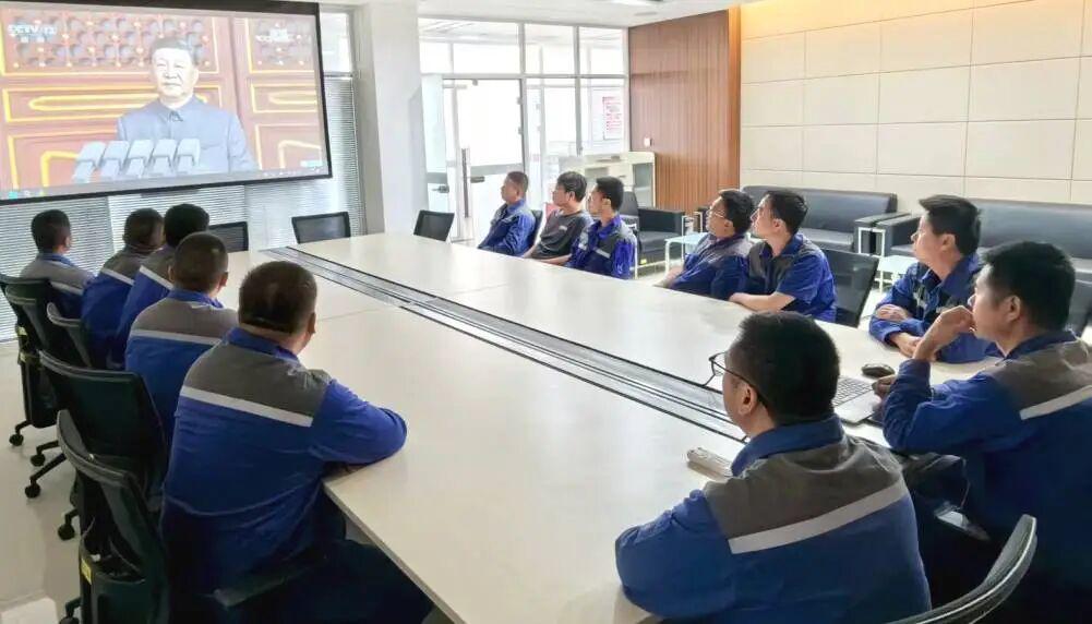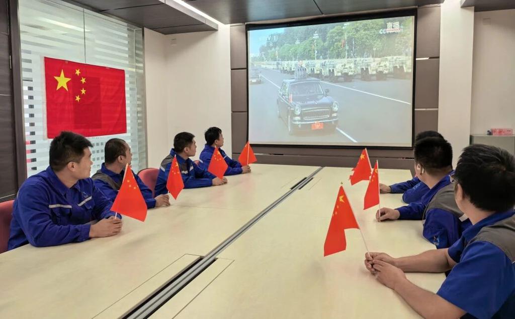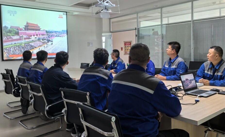 在机关驻地和各生产场站,新能源集团集中组织观看了气势恢宏的阅兵直播,认真聆听习近平总书记的重要讲话。受阅官兵英姿勃发、斗志昂扬,现代化装备威武雄壮、气势如虹,充分展现了新时代人民军队的强大实力和精神风貌。这一幕幕震撼人心的画面,让全体员工热血沸腾,更加坚定了立足岗位、建功立业的信念与决心。