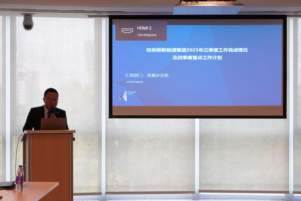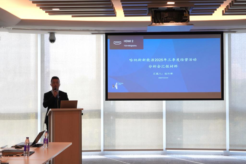 10月24日,哈纳斯新能源集团组织召开三季度经营活动分析会议,总结回顾三季度安全生产与经营管理情况,讨论分析存在的主要问题和影响因素,对冲刺四季度、圆满完成年度任务目标做出安排部署。会议要求全体干部职工统一思想、协同奋进,锚定安全生产等关键领域,以务实举措和拼搏信念,切实取得工作成效,为决胜年度收官攻坚战提供有力支撑。新能源集团管理层人员、各部门负责人及部分业务骨干代表参加会议。