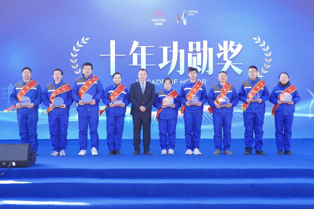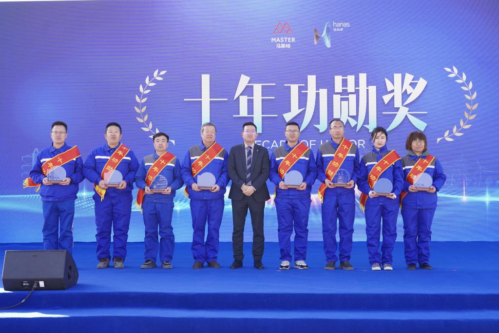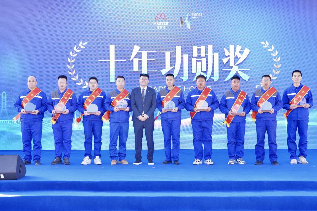 马斯特集团、哈纳斯集团的鼎力支持是新能源事业腾飞的坚实后盾。为表彰新能源集团作出的贡献,马斯特集团、哈纳斯集团在庆典上郑重颁发“卓越发展功勋”奖牌。这份荣誉,是对新能源团队十六年来勇担“排头兵”、在安全、效能、管理、创新等方面取得辉煌成绩的集中认可。